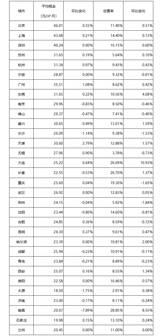 表:全國32個城市平均租金和空置率一覽表